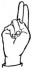 На ћирилици написано ХРАНИМИР ГЕОРГИЈЕВ састоји се из 17 слова [?]. Исписано ћириличном једноручном азбуком за глувонеме:
